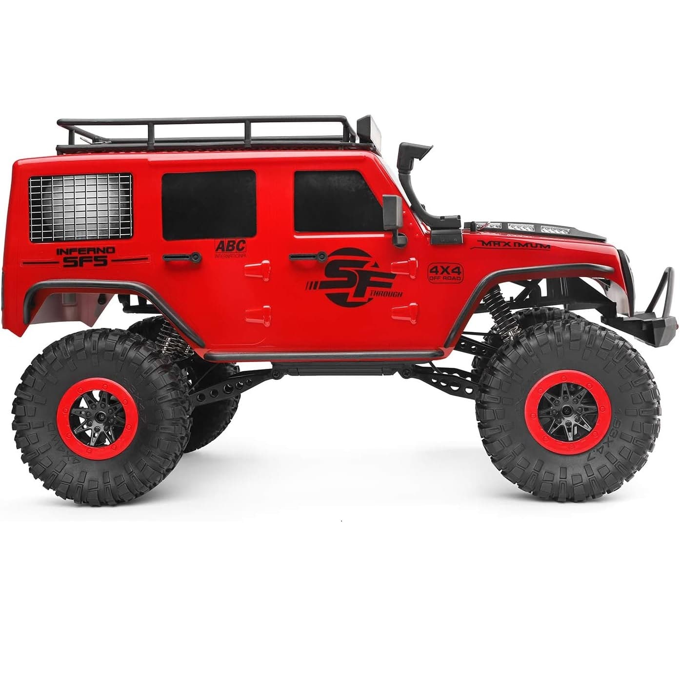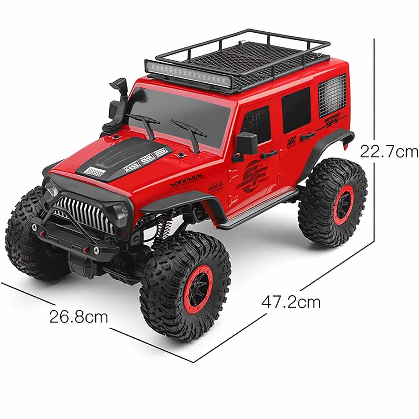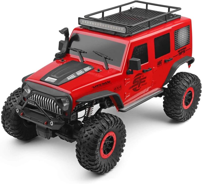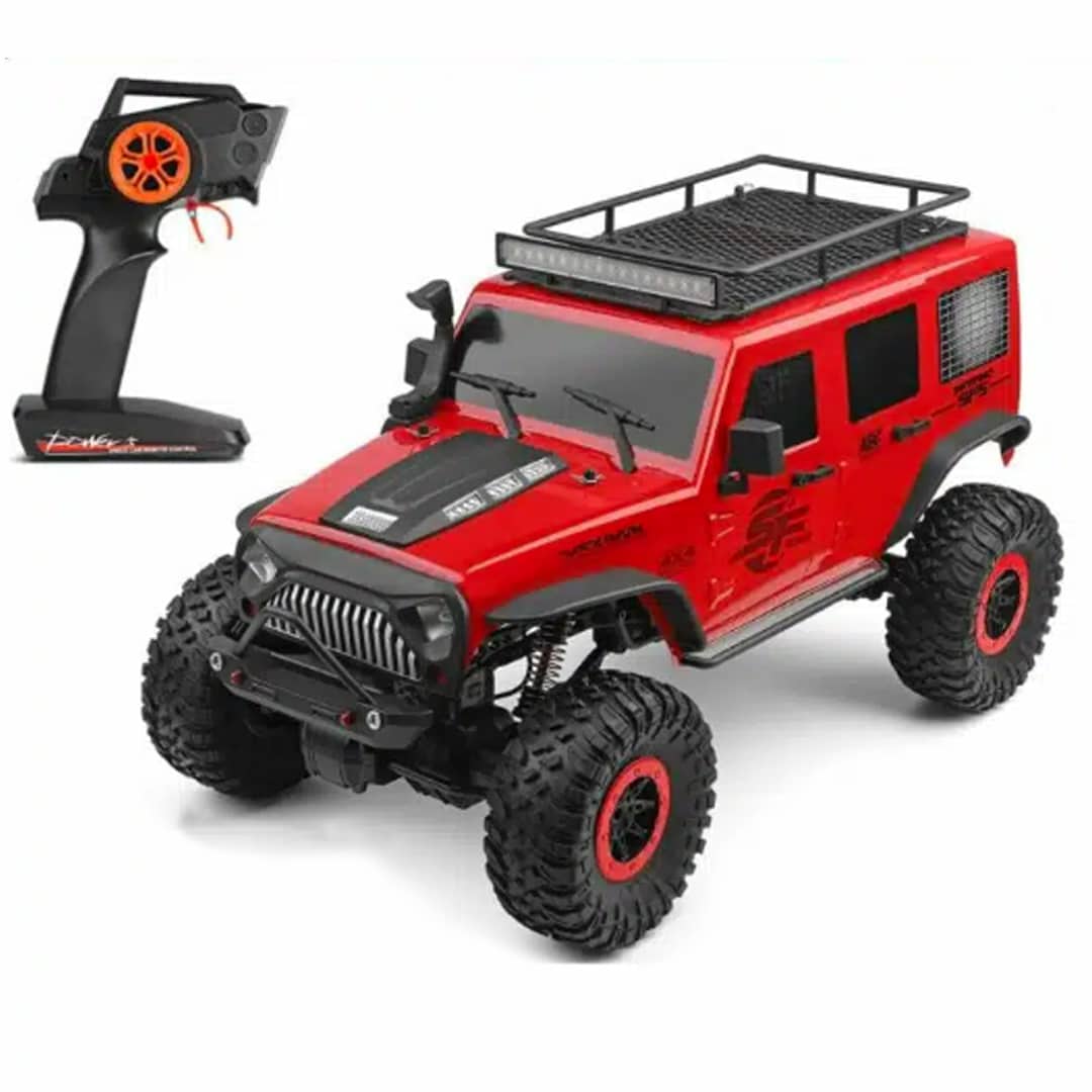 Ce 4×4 télécommandé fonctionne sur tous les types de terrain. Il est équipé d’une suspension à ressorts et d’amortisseurs à double effet pour une conduite fluide et un bon confort de roulement. Les quatre roues motrices permettent une bonne traction et une excellente maniabilité. Le véhicule est également équipé d’un système d’éclairage LED avant pour une meilleure visibilité dans l’obscurité.