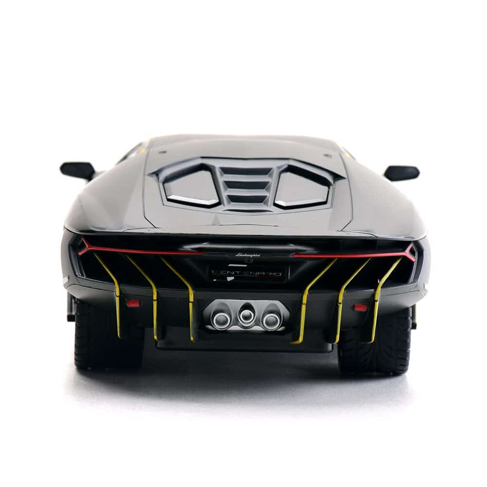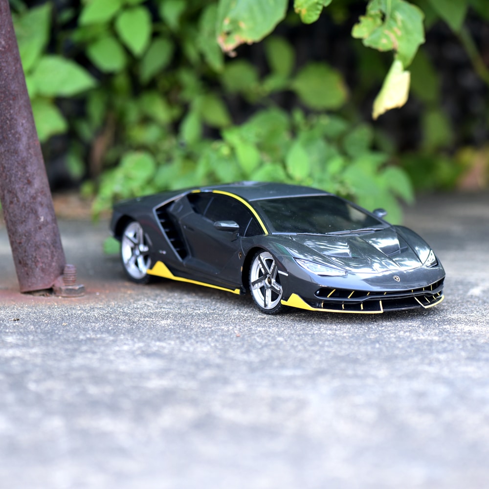 Appréciez le design de la célèbre marque de voiture de luxe du constructeur italien, dans un modèle réduit radioguidé. Une reproduction réaliste, jusqu’aux détails de la carrosserie et sa couleur en nuance de gris carbone avec des détails jaunes. La voiture télécommandée Lamborghini Centenario RC fera briller les yeux des amateurs de sensations.